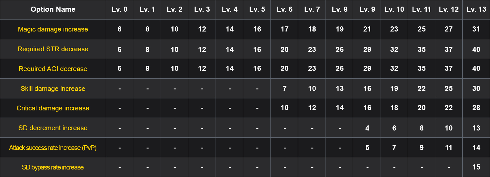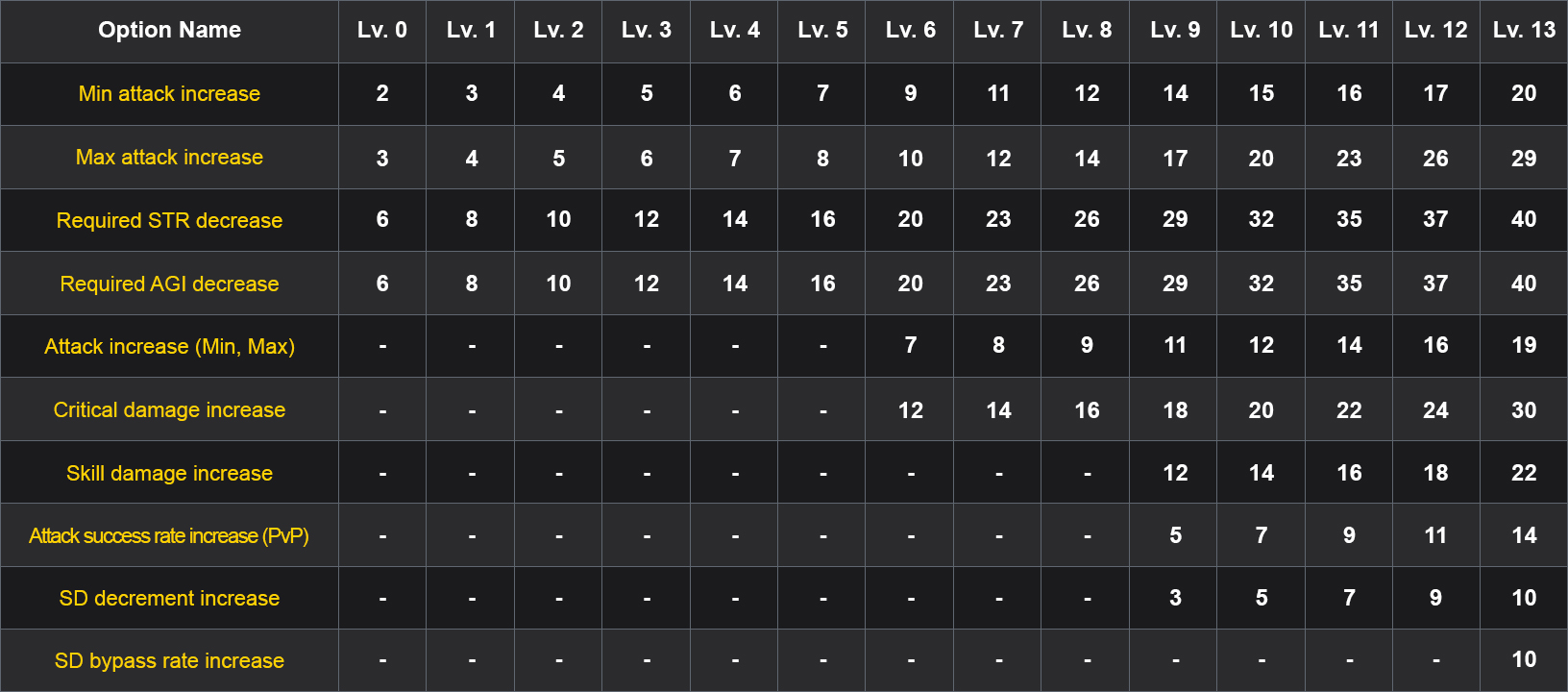 • Attack success rate increase (PvP): +9