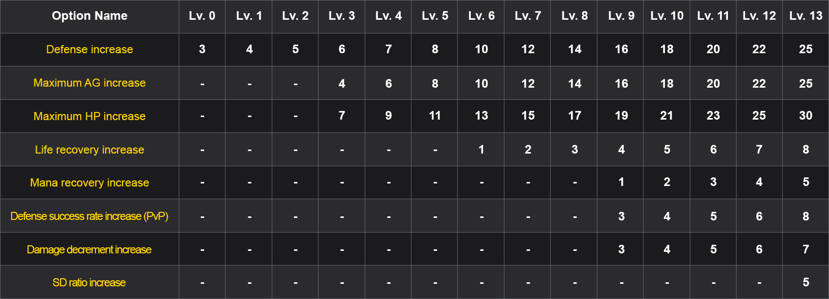 • Defense success rate increase (PvP): +9