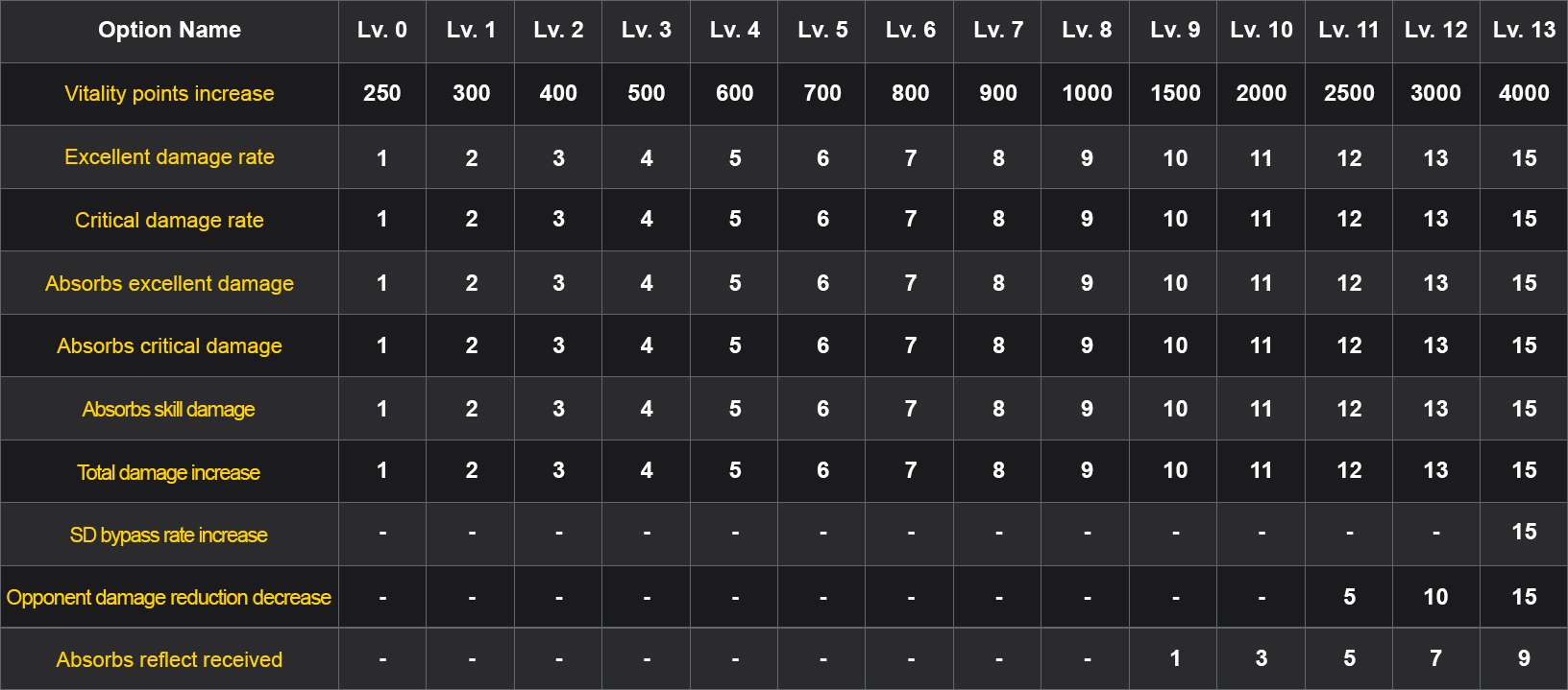 • Opponent damage reduction decrease: +11