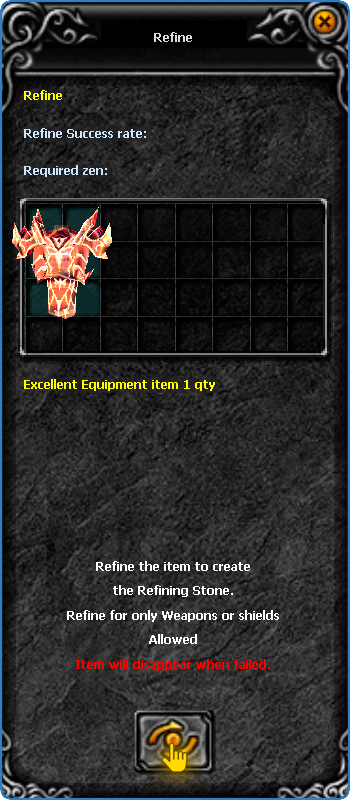 After starting the conversation with him, he would insert an item to create a Refining Stone, remembering that normal items will create a Lower and Excellent items will create a Higher.