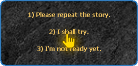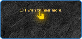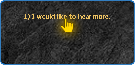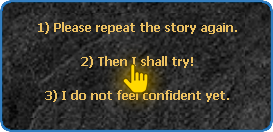 After clicking on the NPC Marlon, it will tell you a story about a legendary treasure lost on the continent of Devilz. To advance the story and continue the quest, just choose the options demarcated below: