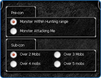 Sets how many monsters must be around the character to activate the Pre-con setting.