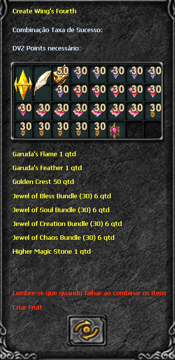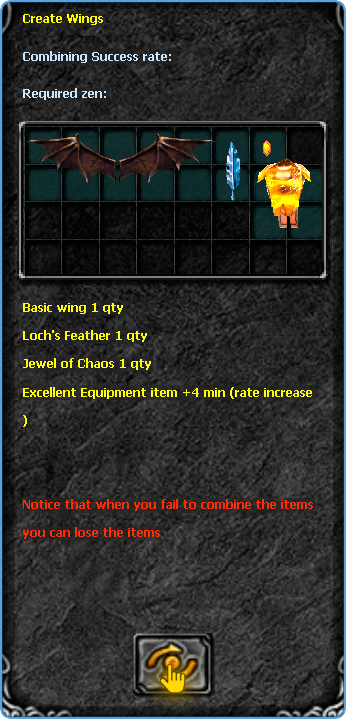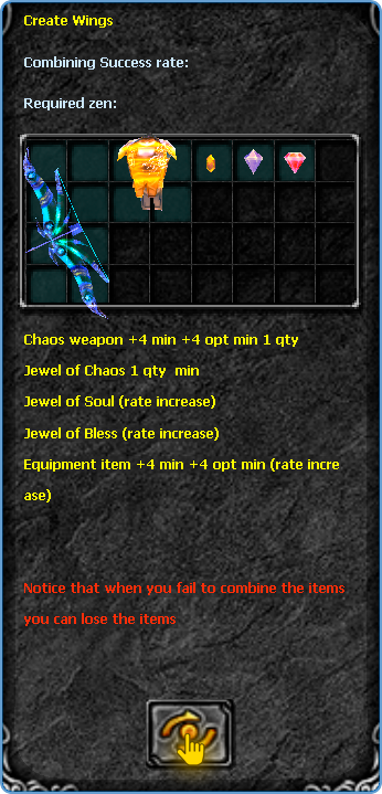 Now, with the Chaos weapon in hand, you can create your level 1 wing. For the combination of the wing, you will need the following ingredients below: